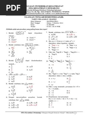 Soal uts matematika kelas 10 semester 1 kurikulum 2013 tahun 2019.