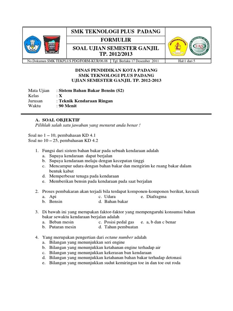 Soal Uas Pemeliharaan Sasis Dan Pemindahan Tenaga Tkr Doc - Soal Ujian Akhir Semester Pemeeliharaan Sasis Dan Pemindah Tenaga Kendaraan Ringan Kelas Xi Pdf - Pemeliharaan sasis pemindah tenaga kendaraan ringan program .. Soal uas otomotif paling lengkap teknik kendaraan ringan kelas xi lengkap. Kegiatan belajar 1 :pendahuluan sistem pemindah tenaga. Soal pemeliharaan sasis dan pemindah tenaga kendaraan ringan. Mempercepat perpindahan tenaga dari transmisi ke differential. Soal dan kunci jawaban kelas x teknik kendaraan ringan uas.